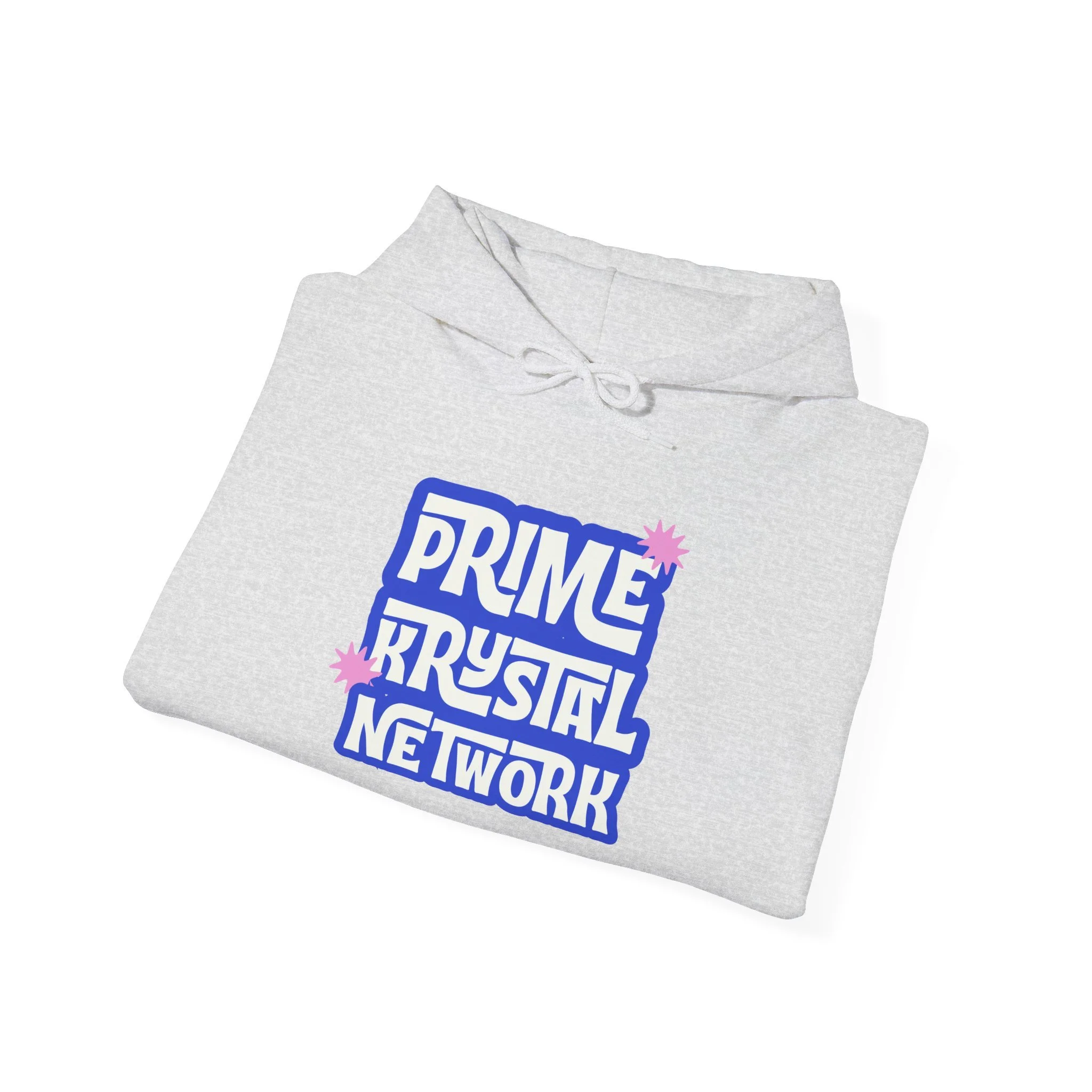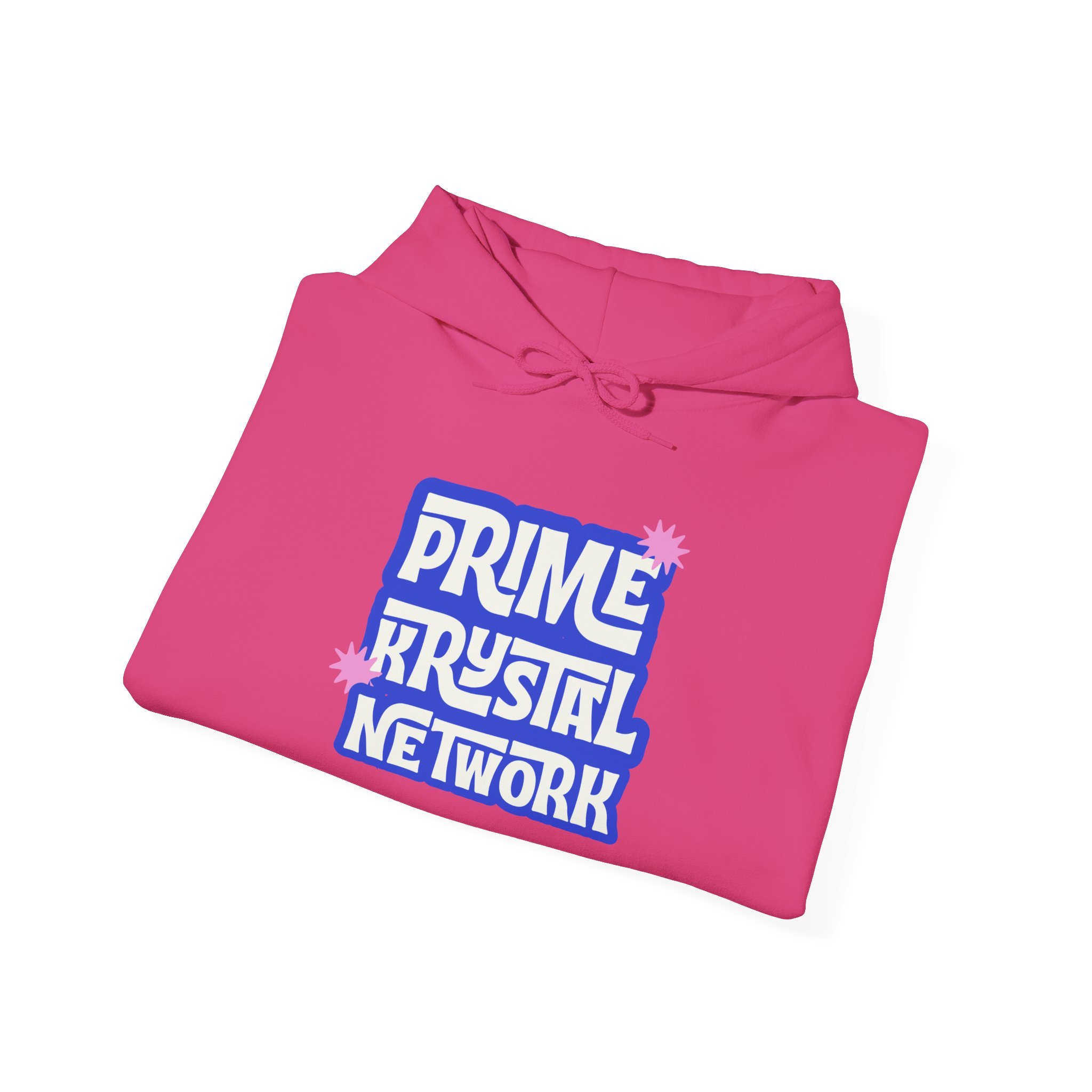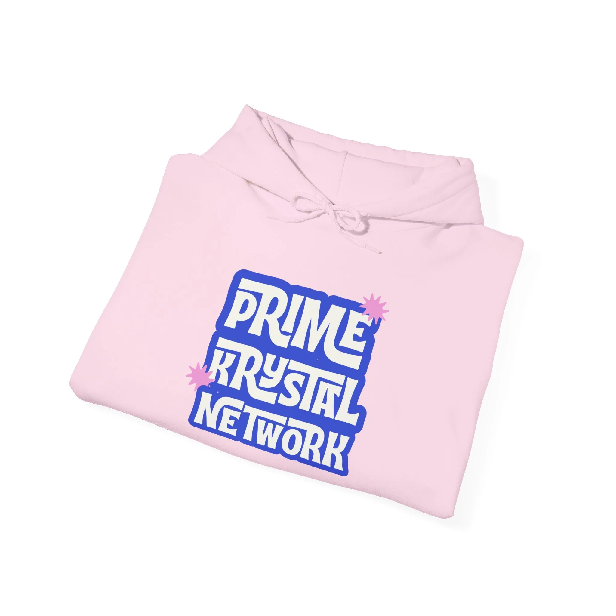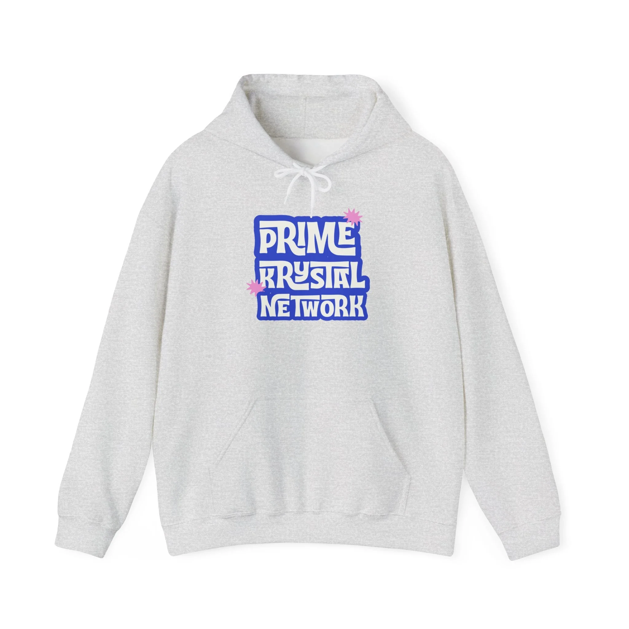 This soft, mid-weight hoodie carries a playful, retro-inspired logo that reads “Prime Krystal Network” in bold, rounded type with subtle pink crystal accents. The roomy hood and kangaroo pocket make it an easy go-to for cool mornings, late-night streams, or coffee runs with friends. It wears like a familiar favorite — roomy through the body, snug at the cuffs, and reassuringly warm without feeling bulky. The graphic has a slightly nostalgic, fan-club vibe that connects to online communities and indie media lovers, while the clean white background keeps the look fresh and versatile. Slip it on to represent your corner of the internet or to curl up and keep creative energy flowing.