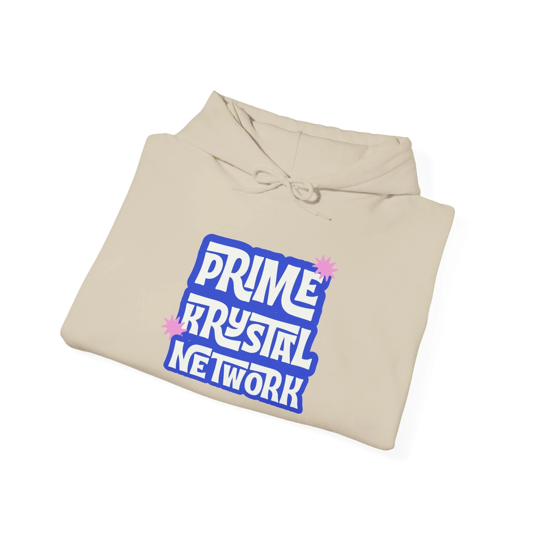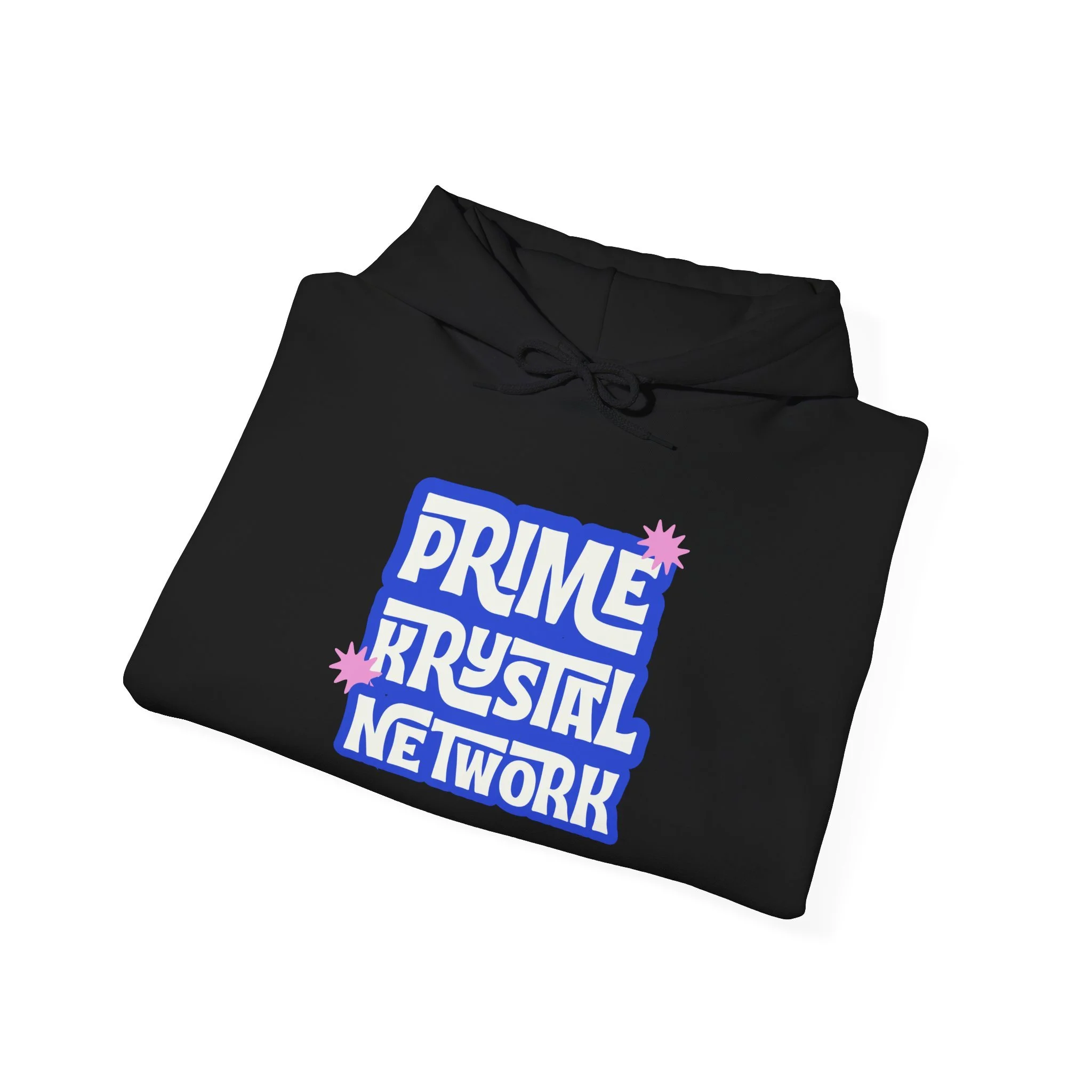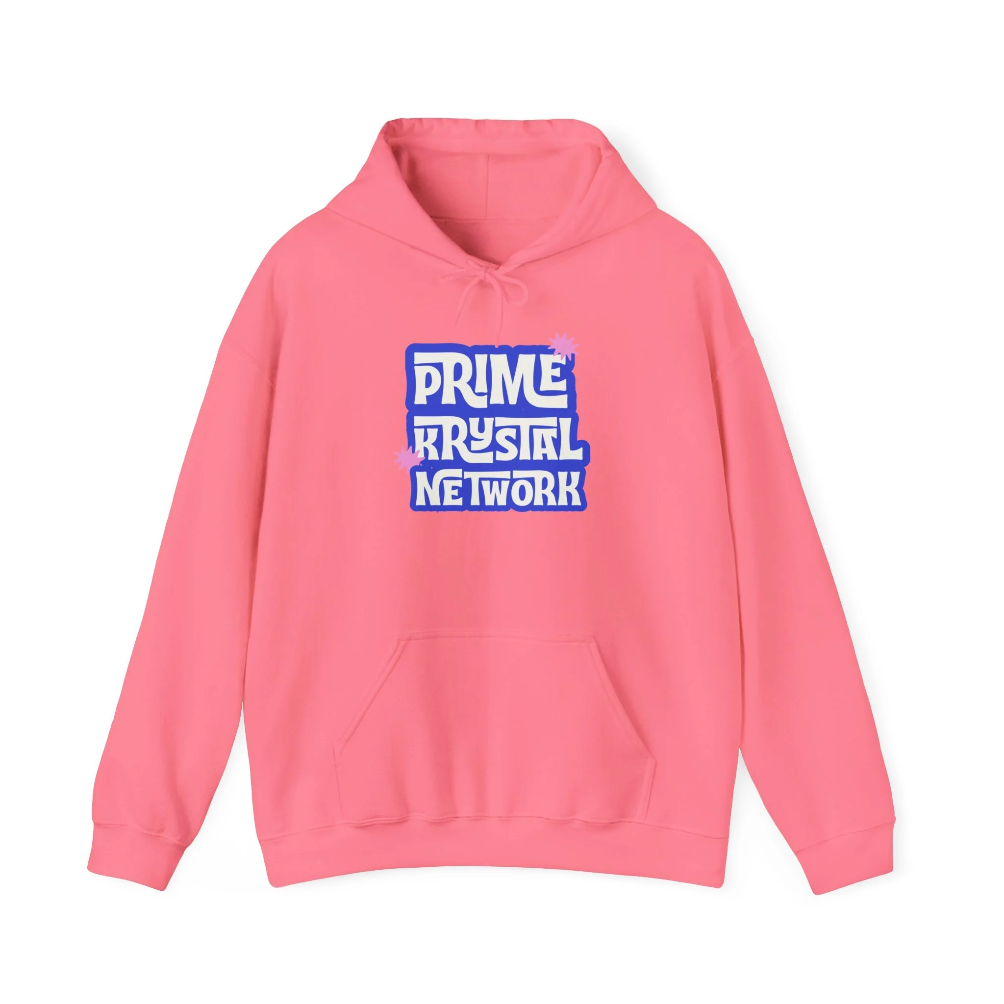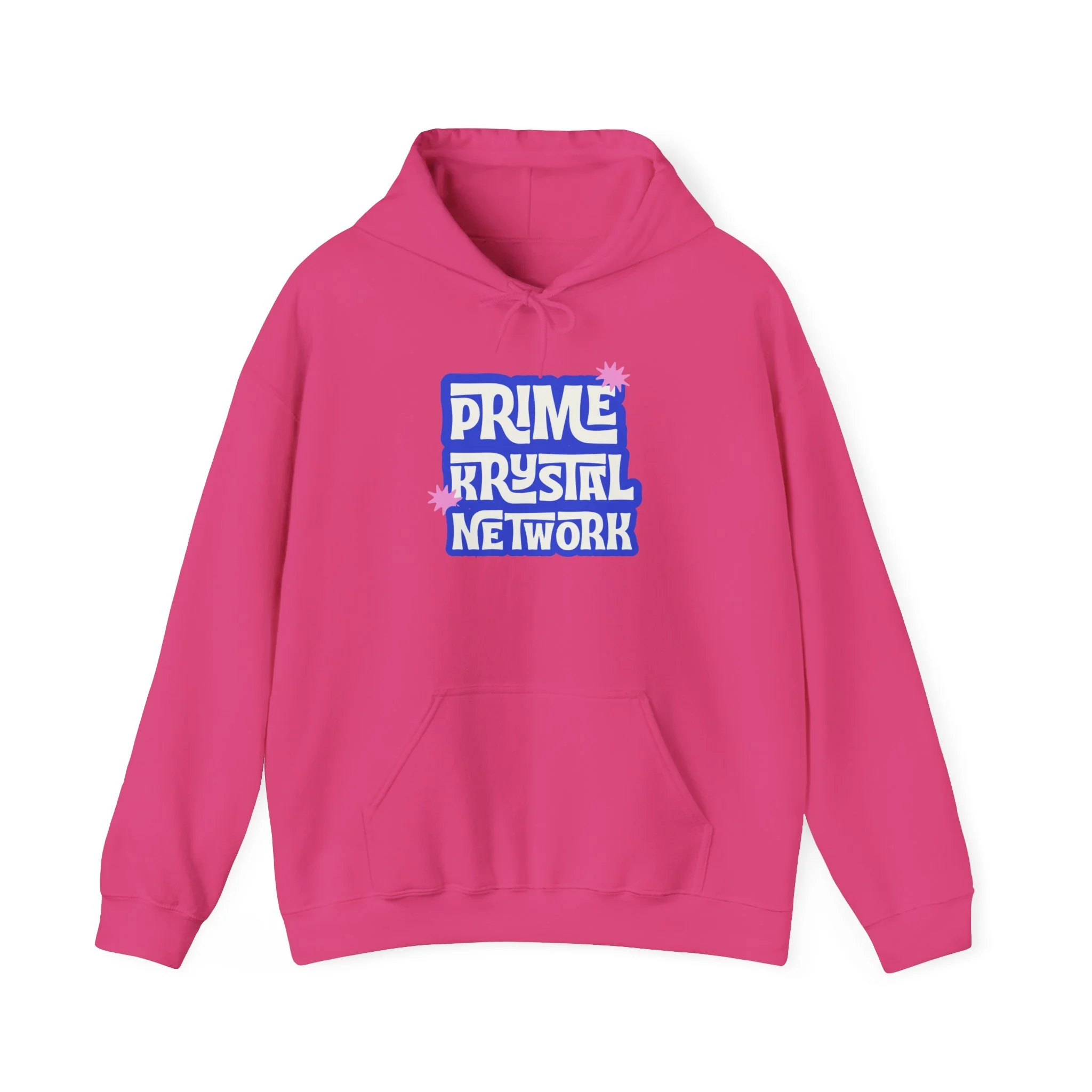 This soft, mid-weight hoodie carries a playful, retro-inspired logo that reads “Prime Krystal Network” in bold, rounded type with subtle pink crystal accents. The roomy hood and kangaroo pocket make it an easy go-to for cool mornings, late-night streams, or coffee runs with friends. It wears like a familiar favorite — roomy through the body, snug at the cuffs, and reassuringly warm without feeling bulky. The graphic has a slightly nostalgic, fan-club vibe that connects to online communities and indie media lovers, while the clean white background keeps the look fresh and versatile. Slip it on to represent your corner of the internet or to curl up and keep creative energy flowing.